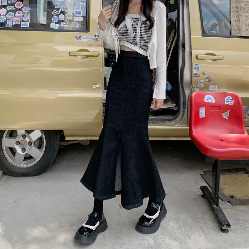 スカート サマーロング薄手ブラックハイウェストウェスト 夏物 クレセントシティ79063919069