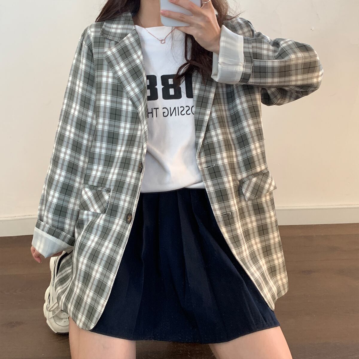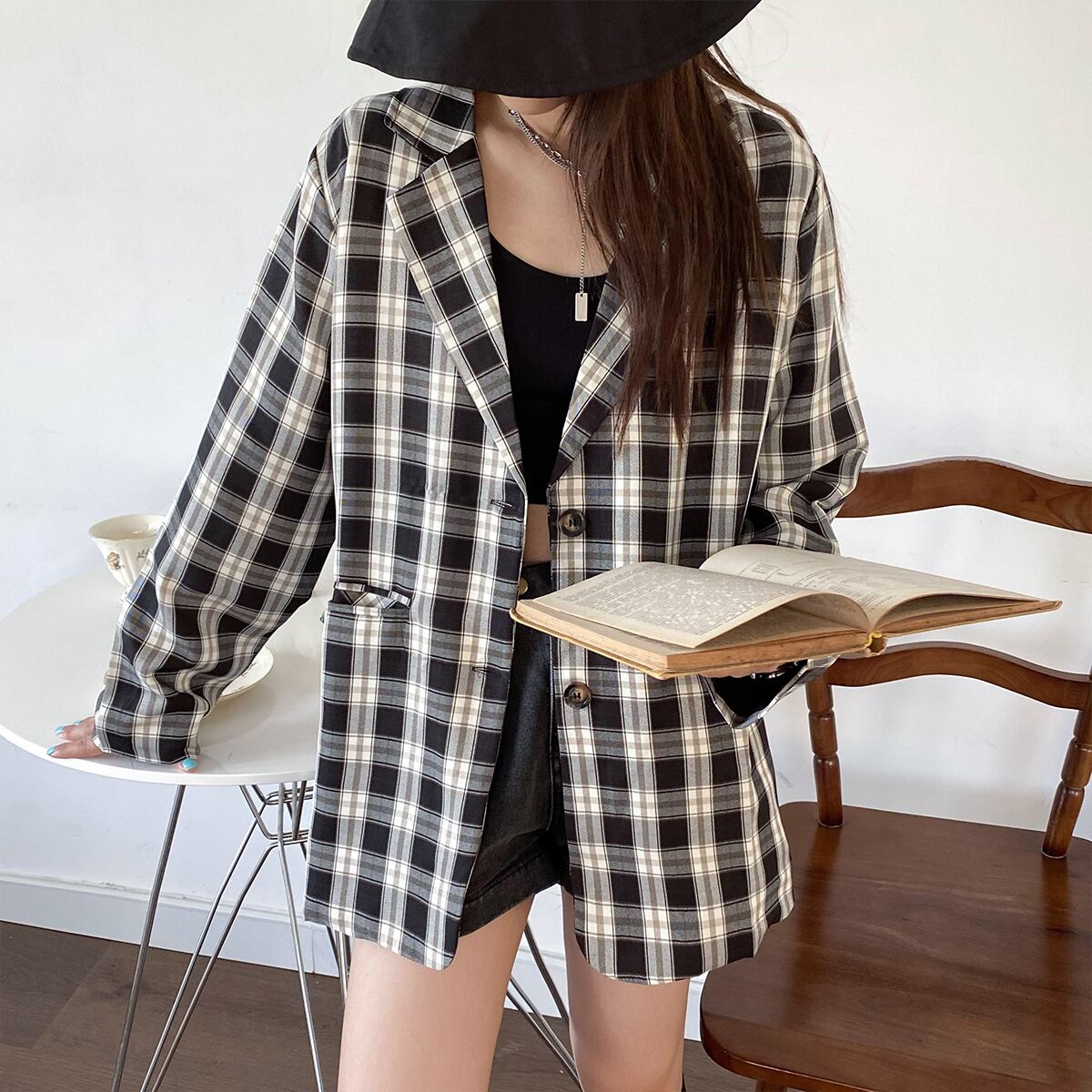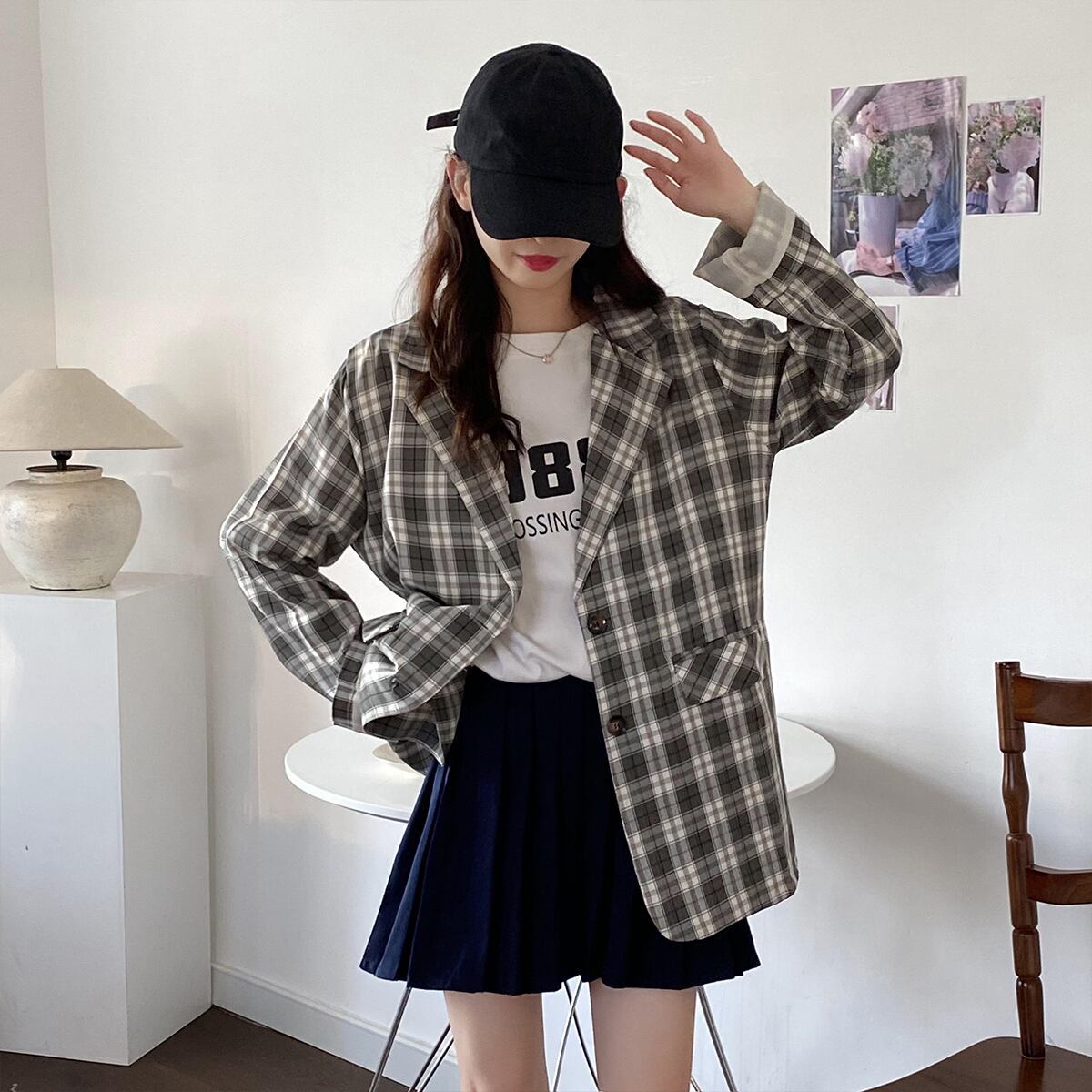 スタンダード格子柄ジャケット オータムルーズカジュアル レトロ ストリート 秋物 クレセントシティ83580141804