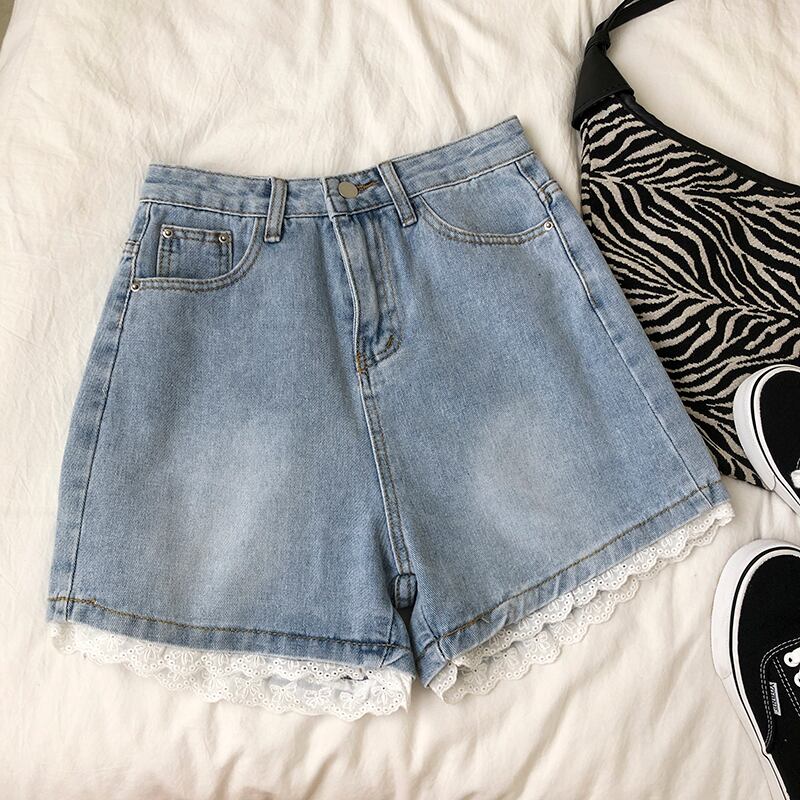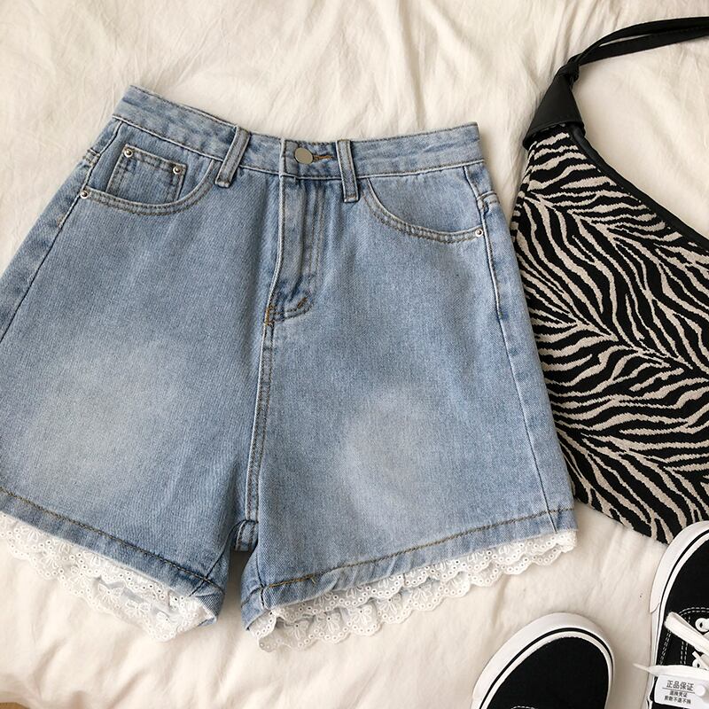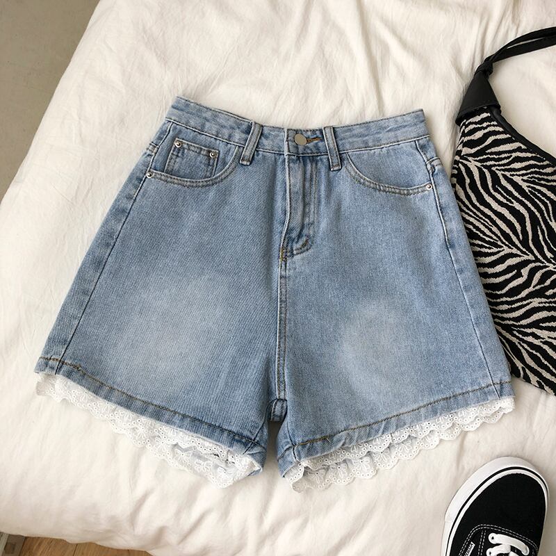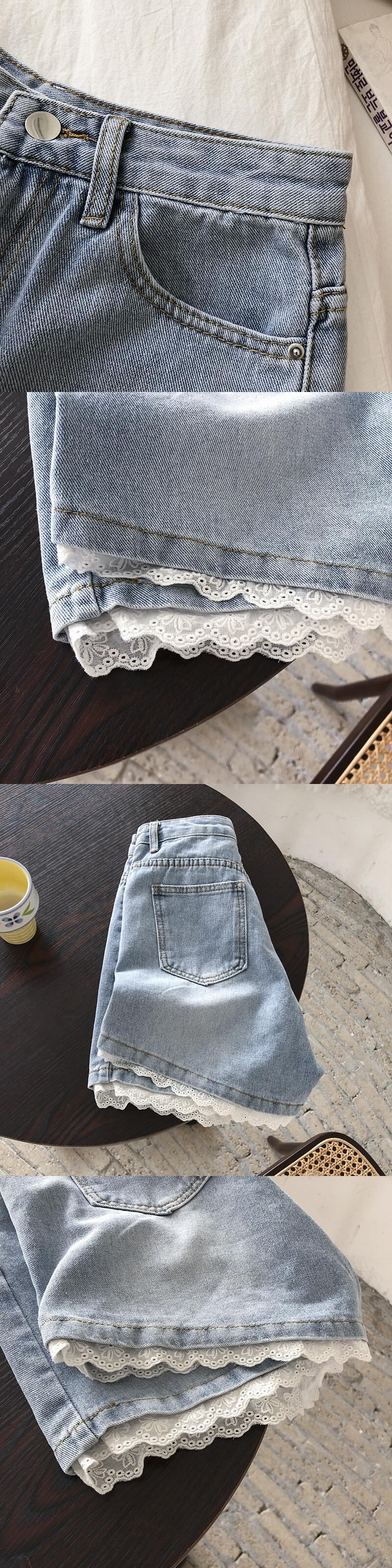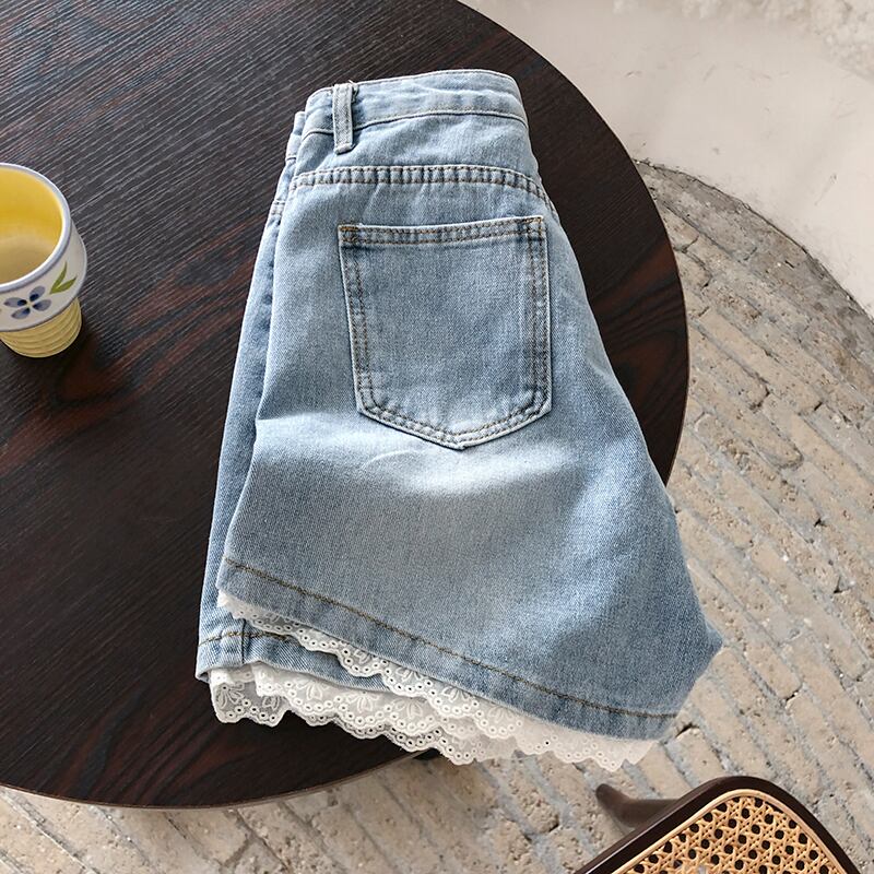 ウェストジーンズ サマーレースルーズ薄手ショートAラインパンツ 夏物 クレセントシティ46743204906