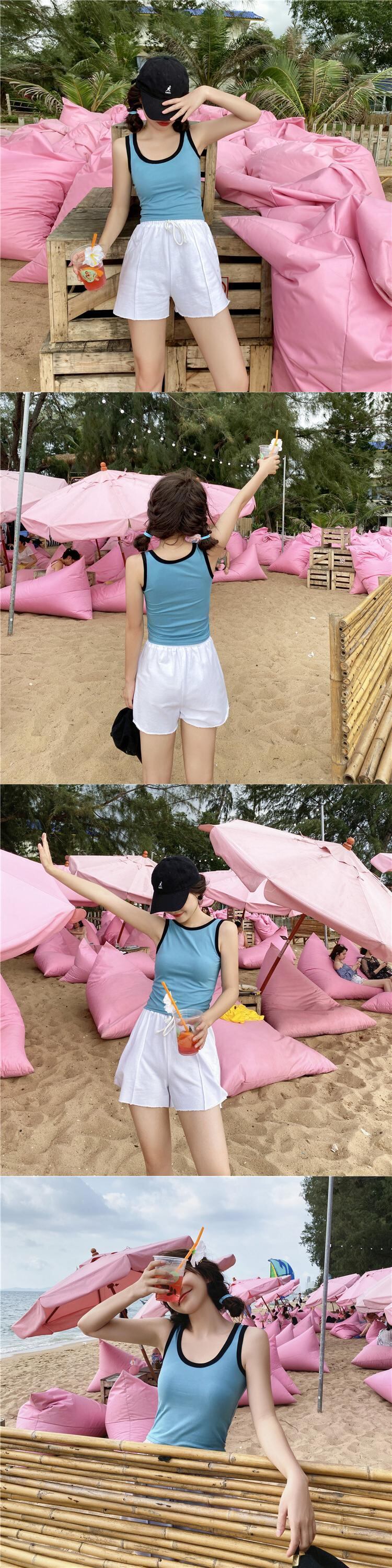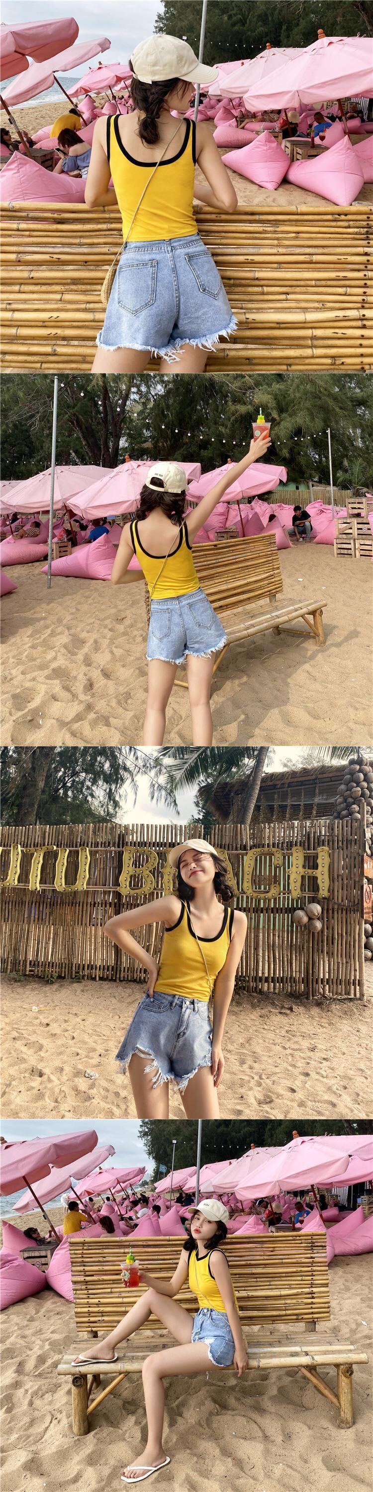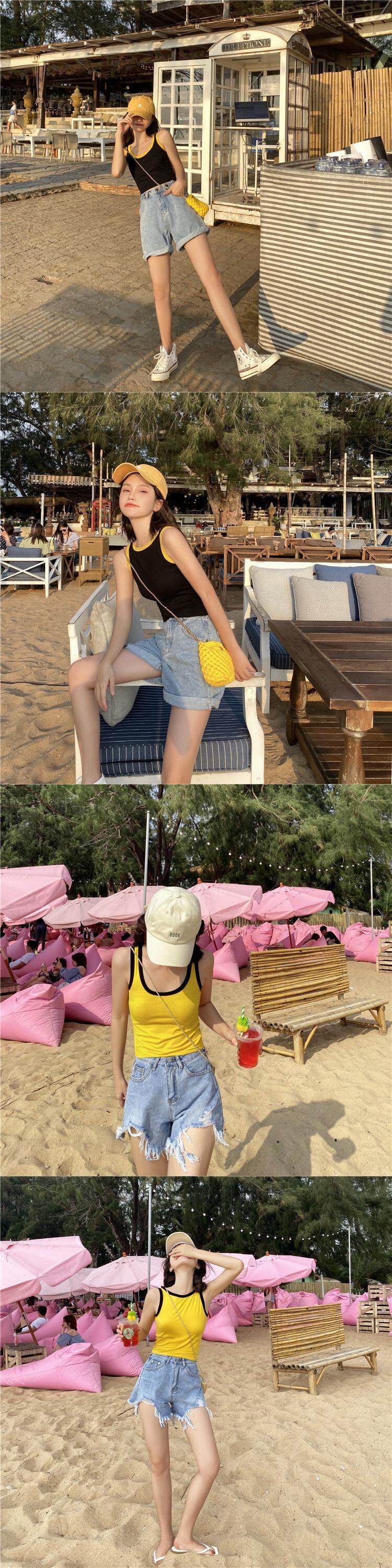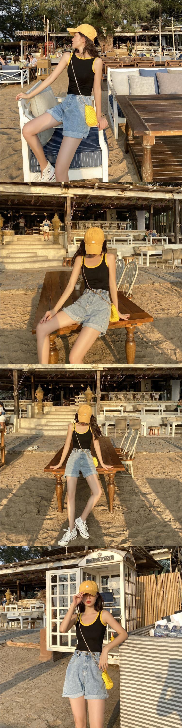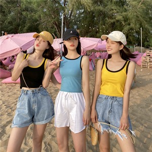 バックサマーソリッド カラーシャツ ノースリーブトップス 夏物 ソリッドカラー クレセントシティ36554753061