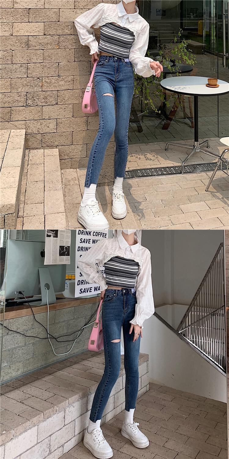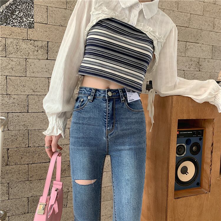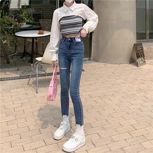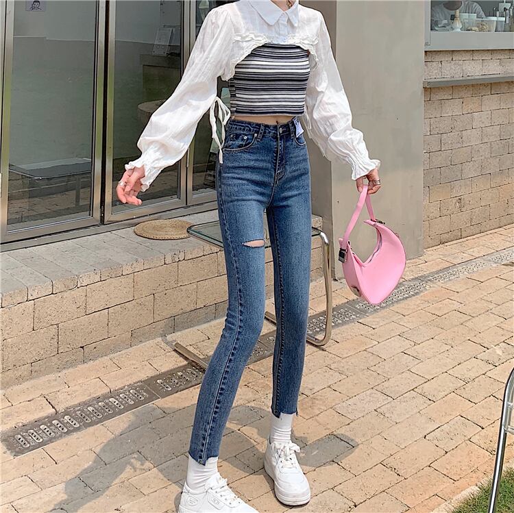スタンダードジーンズ オータムスリムパンツ ハイウェスト レトロ 秋物 クレセントシティ95323826882