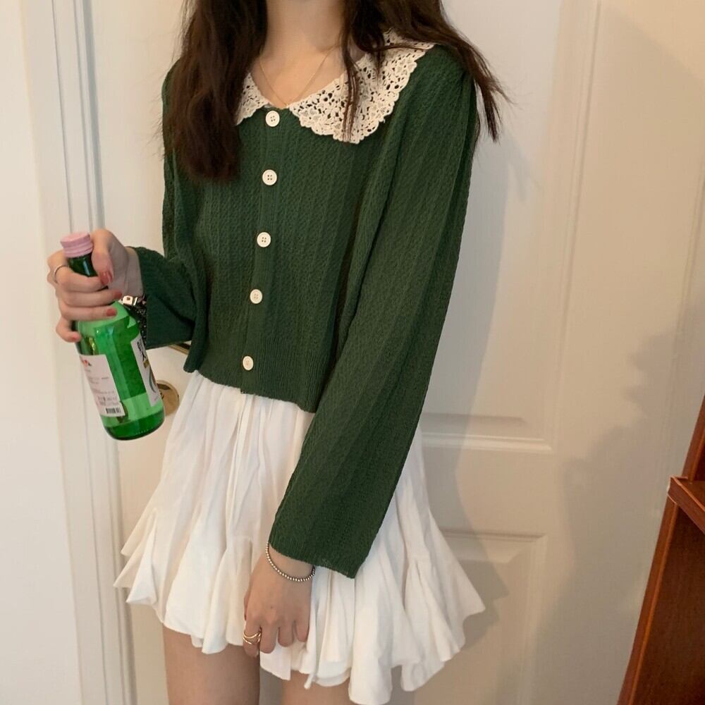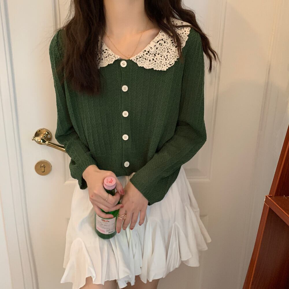スタイルスタンダードニットカーディガンオータムルーズ薄手コート ショート ロング レトロ 秋物 クレセントシティ11227302910
