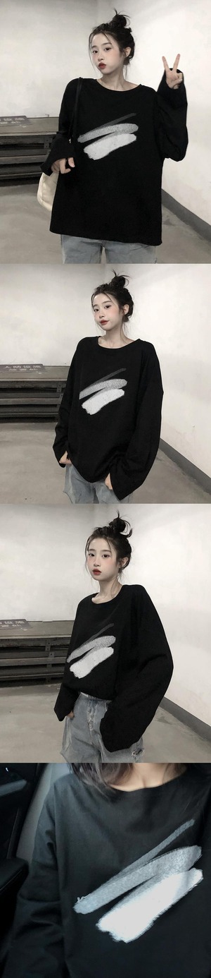 色:白い落書き長袖Tシャツ,黒のグラフィティ長袖Tシャツ