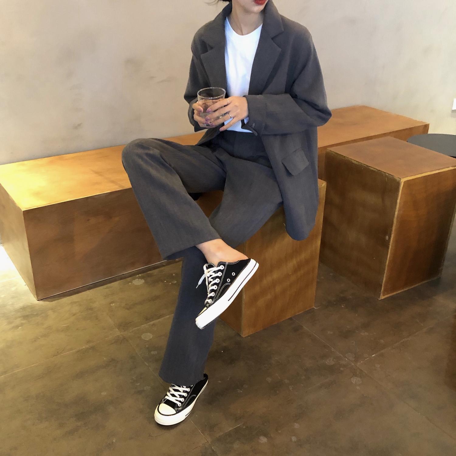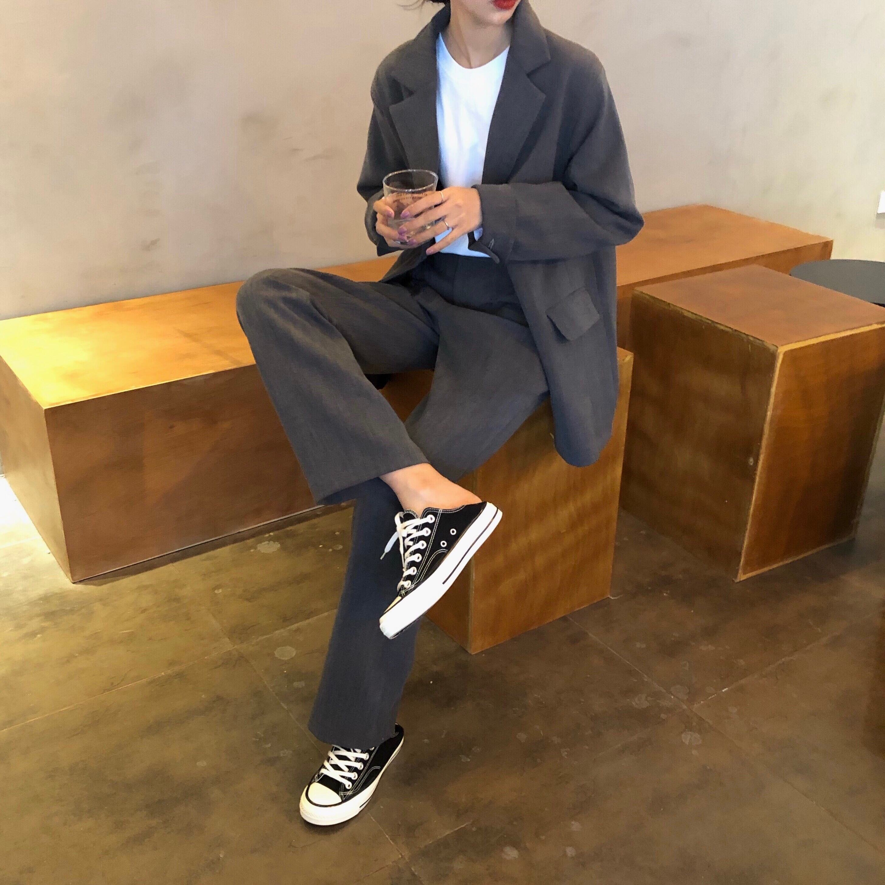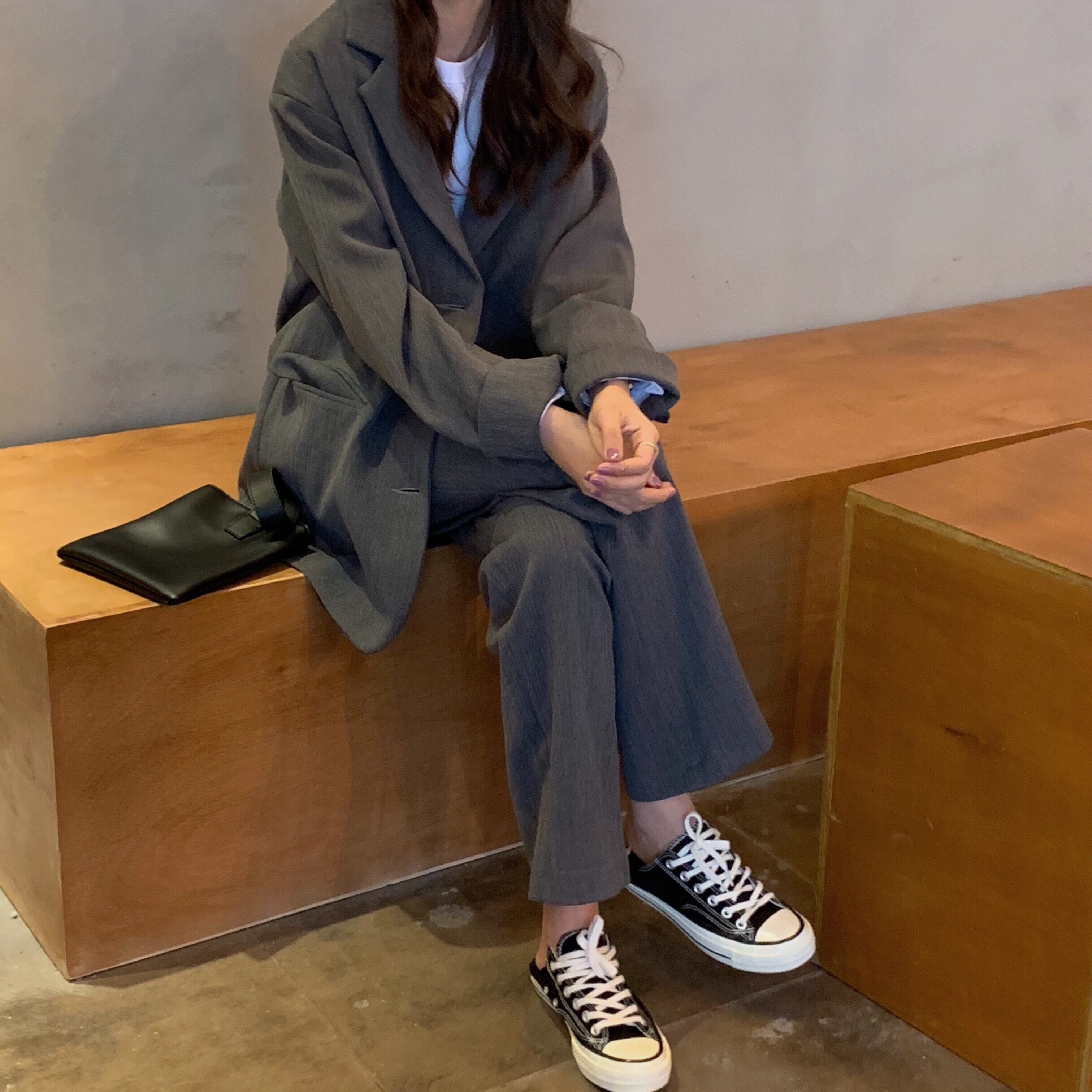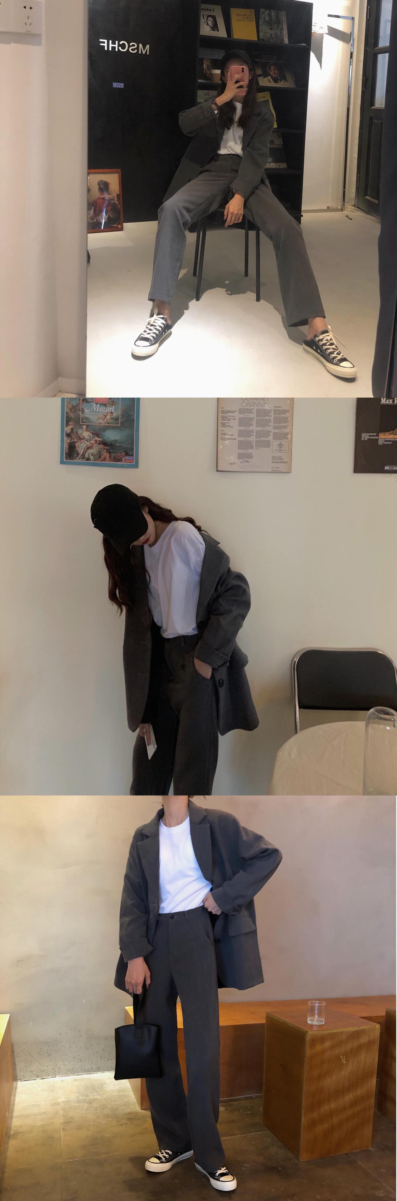 色:グレーブレザー,グレーのスーツパンツ,グレースーツパンツM