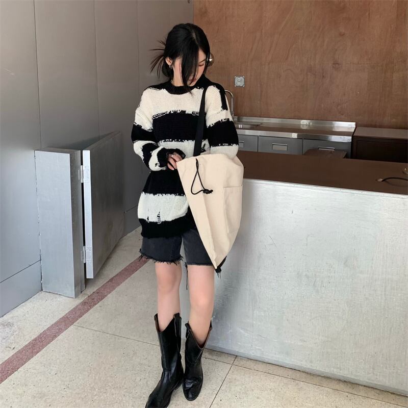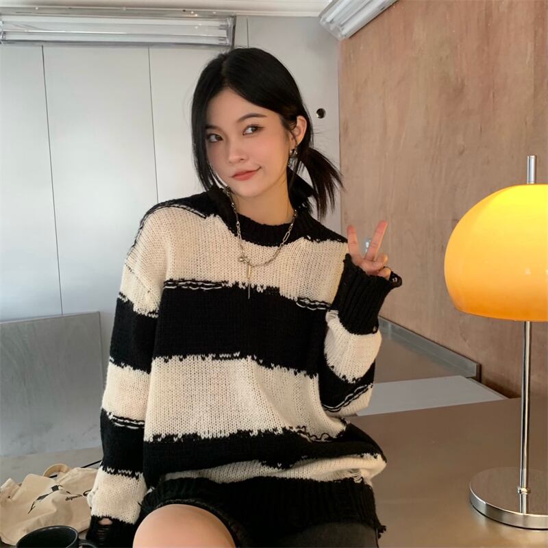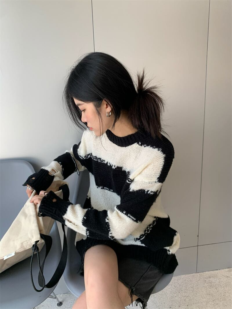 スタイルストライプセーター レディースルーズトップス ロング オータム 秋物 ウィンター 冬物 クレセントシティ21235003162