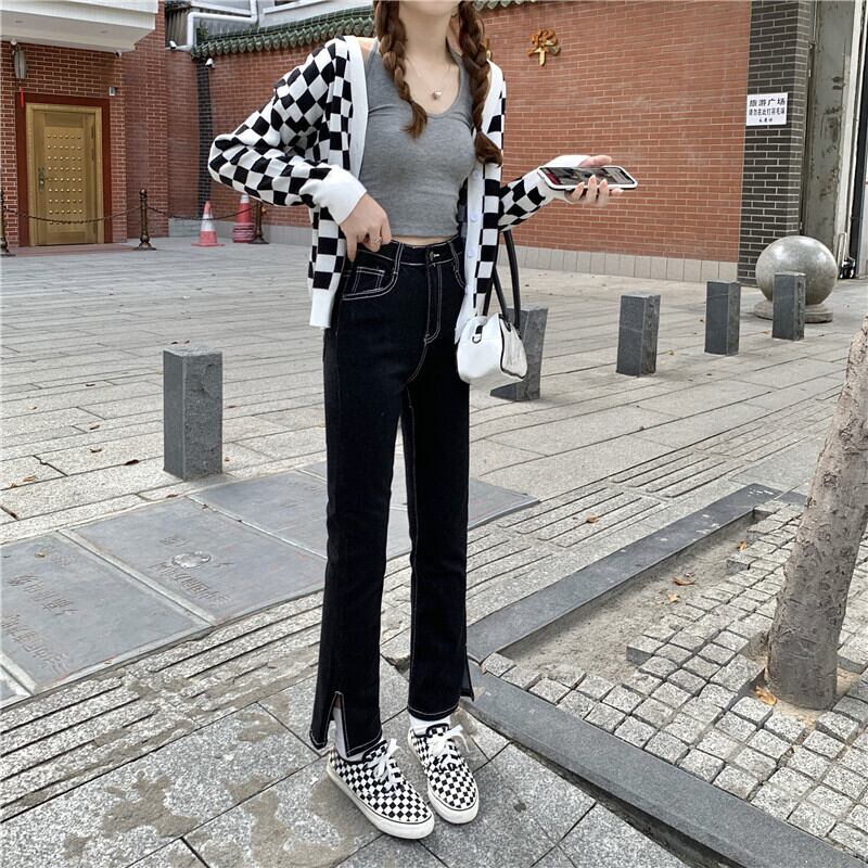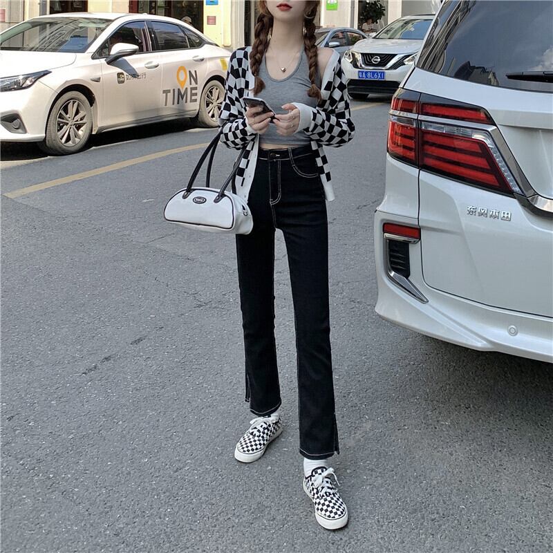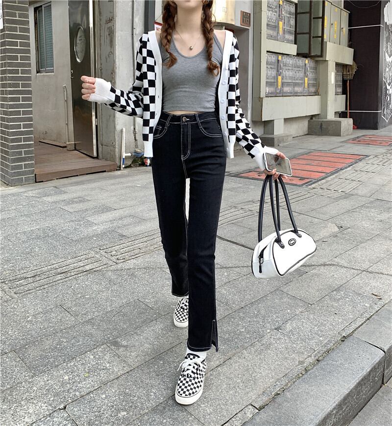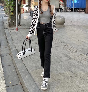 ブラックジーンズ オータム薄手ハイウェストパンツ 秋物 クレセントシティ77444136254
