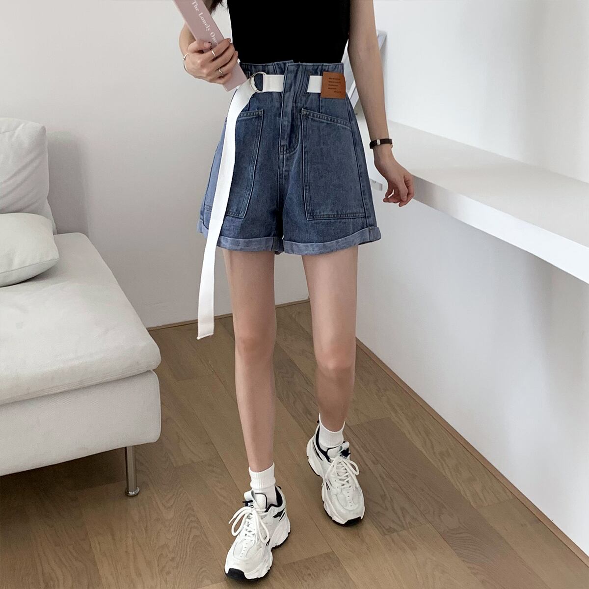 ブルーショートサマールーズ薄手ウェストワイドレッグパンツ 夏物 ワイドパンツ クレセントシティ3605500511