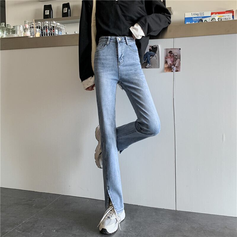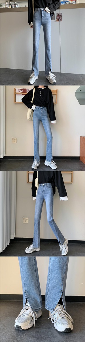 スリットジーンズ オータム薄手ハイウェスト 秋物 クレセントシティ75411536602