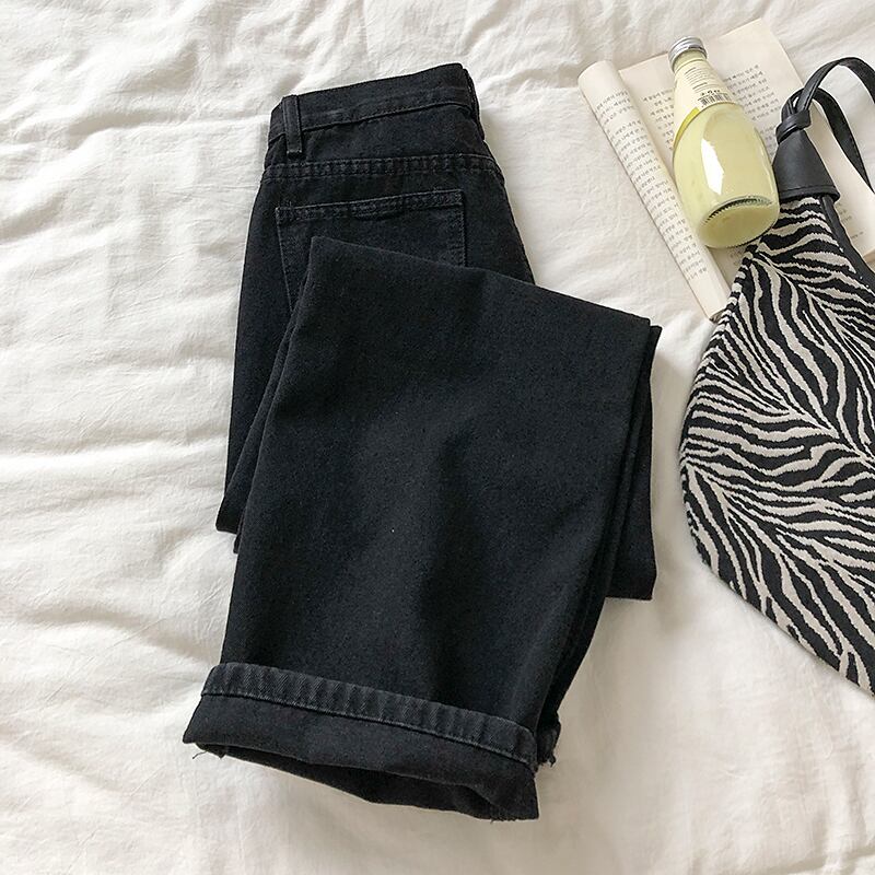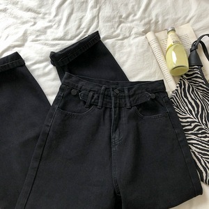 ブラックハイウェストジーンズ レディースサマースタイルパンツ ルーズ薄手 夏物 クレセントシティ46641633011