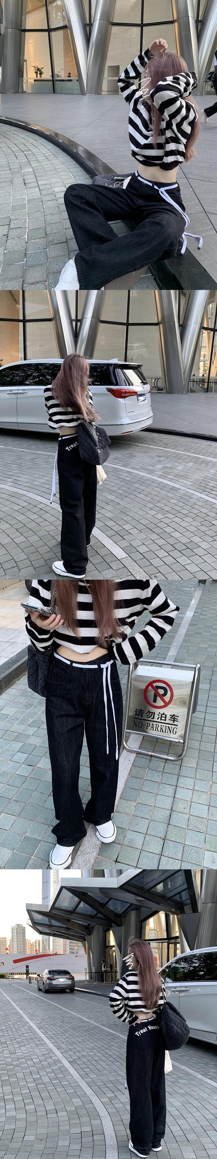 スタイルハイウェストウェストジーンズ レディースルーズ薄手パンツ クレセントシティ27725985912