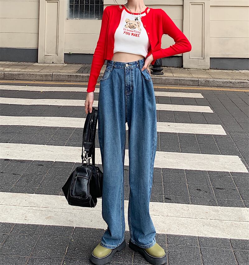 ハイウェストパンツ オータムルーズ薄手ジーンズ レディース 秋物 アジャスタブル クレセントシティ57331154841