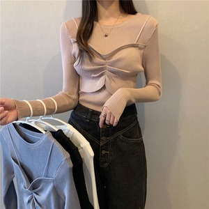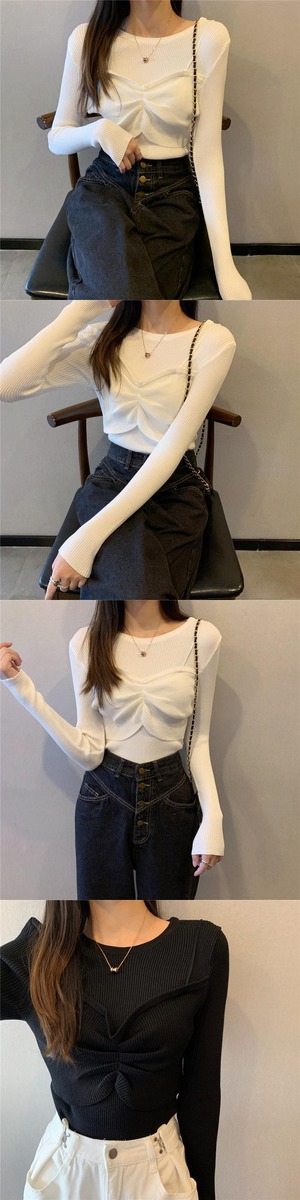 セーター オータムスリムソリッド カラープルオーバー トップス ロング 秋物 ソリッドカラー クレセントシティ23236650095