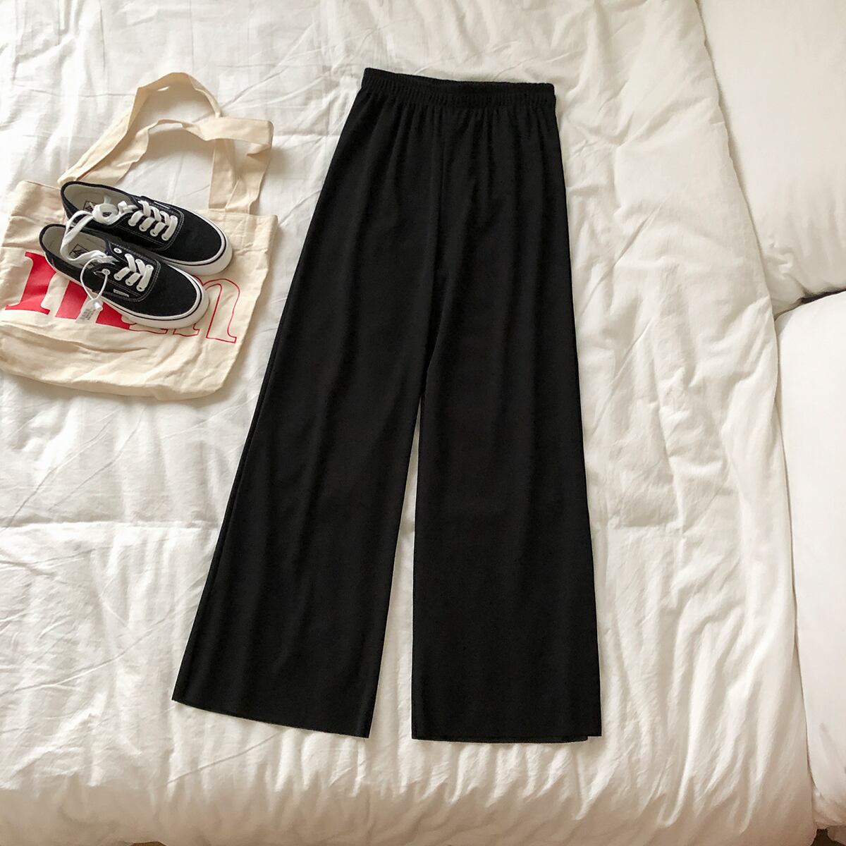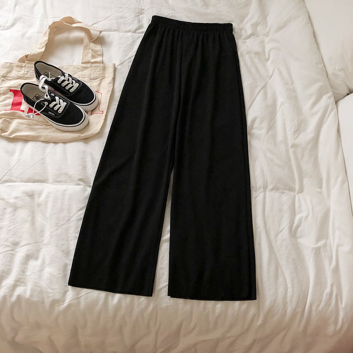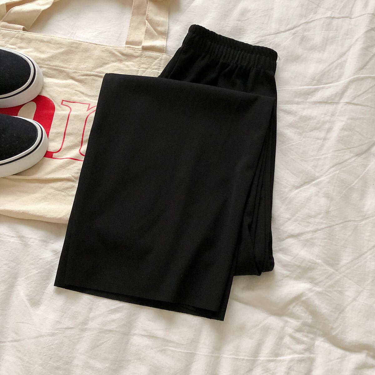 ブラックストレッチウェストカジュアルパンツ サマースタイルルーズ薄手 エラスティック 伸縮 夏物 クレセントシティ13525840250