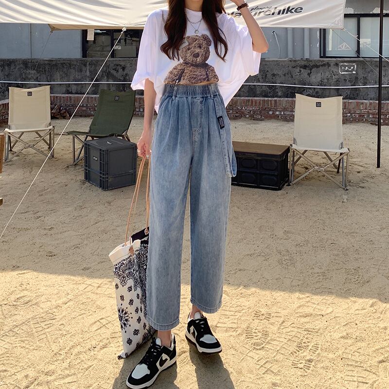 薄手ルーズジーンズ レディースサマーストレッチハイウェストウェストパンツ エラスティック 伸縮 夏物 クレセントシティ95563489133
