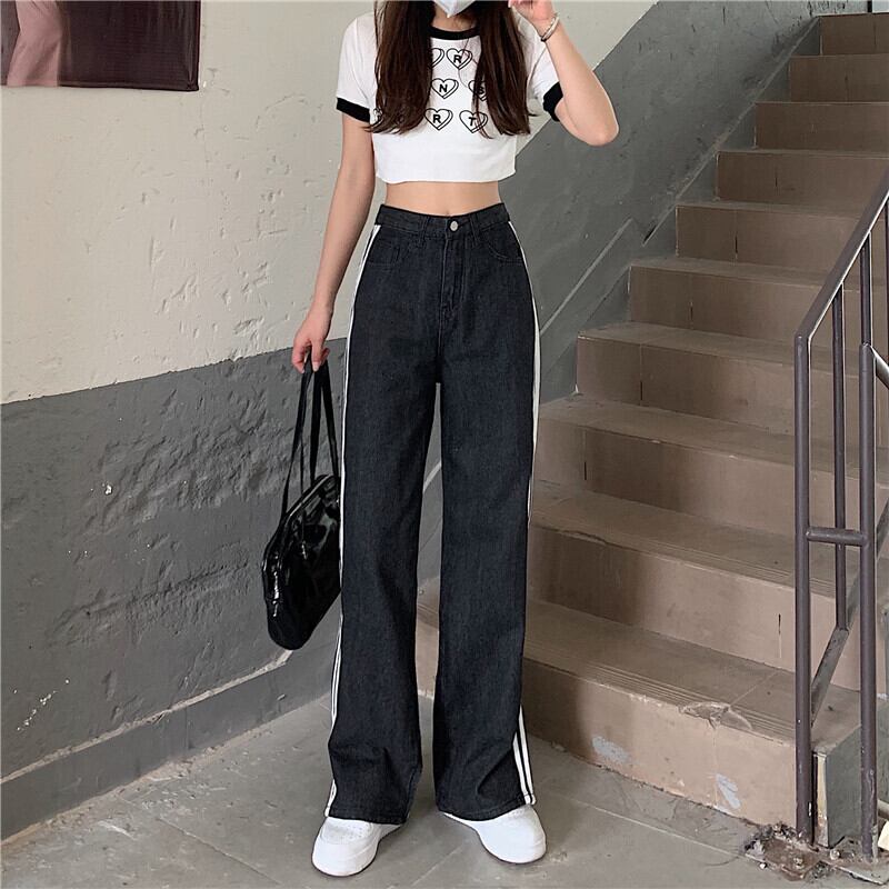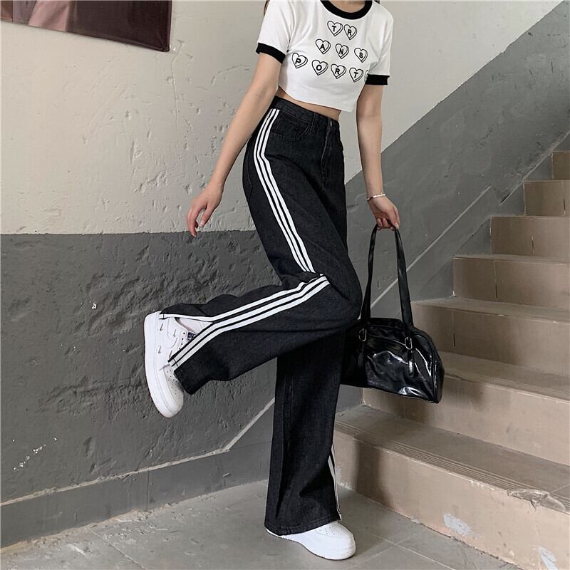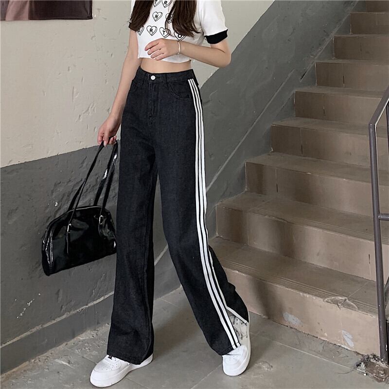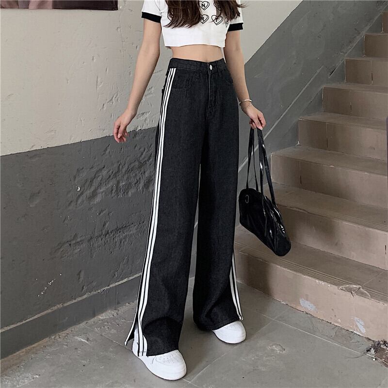 ストライプスリットジーンズ レディースサマールーズ薄手ハイウェストウェストカジュアル 夏物 クレセントシティ91621109117
