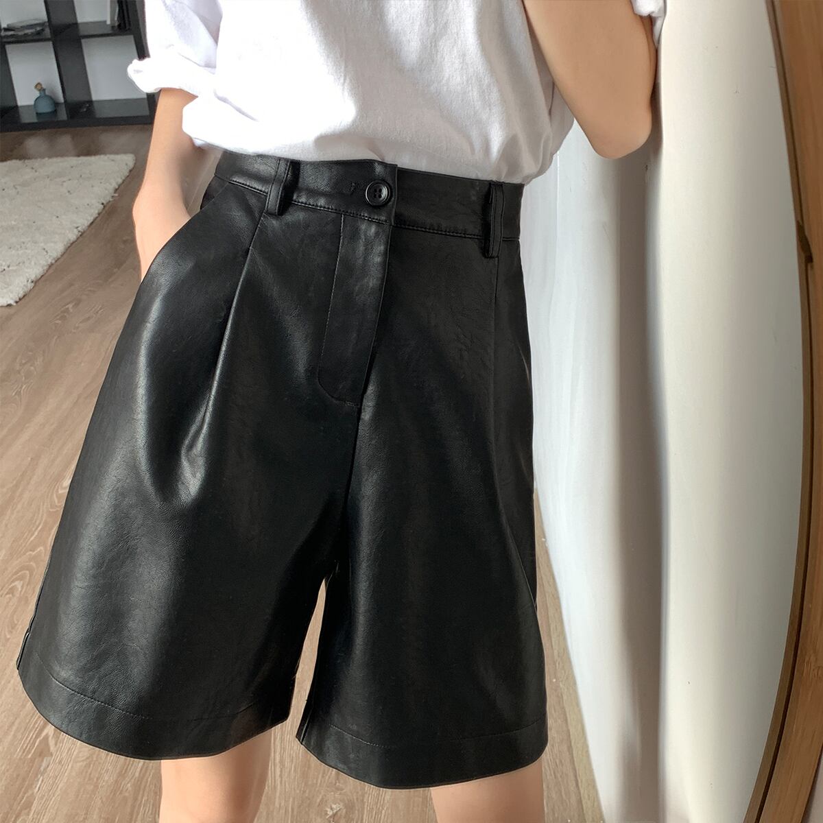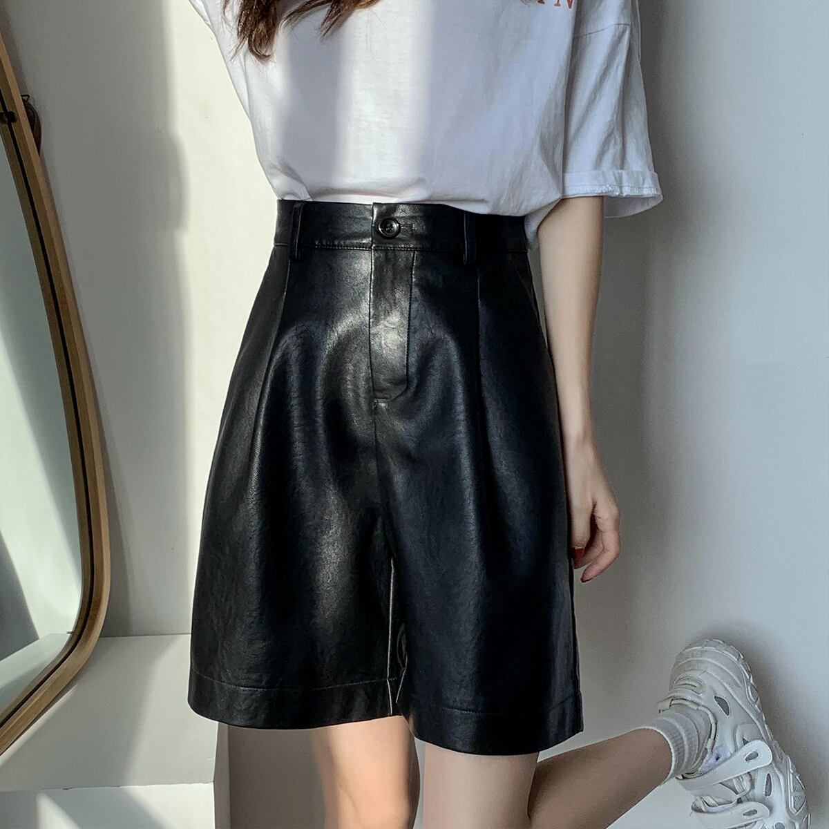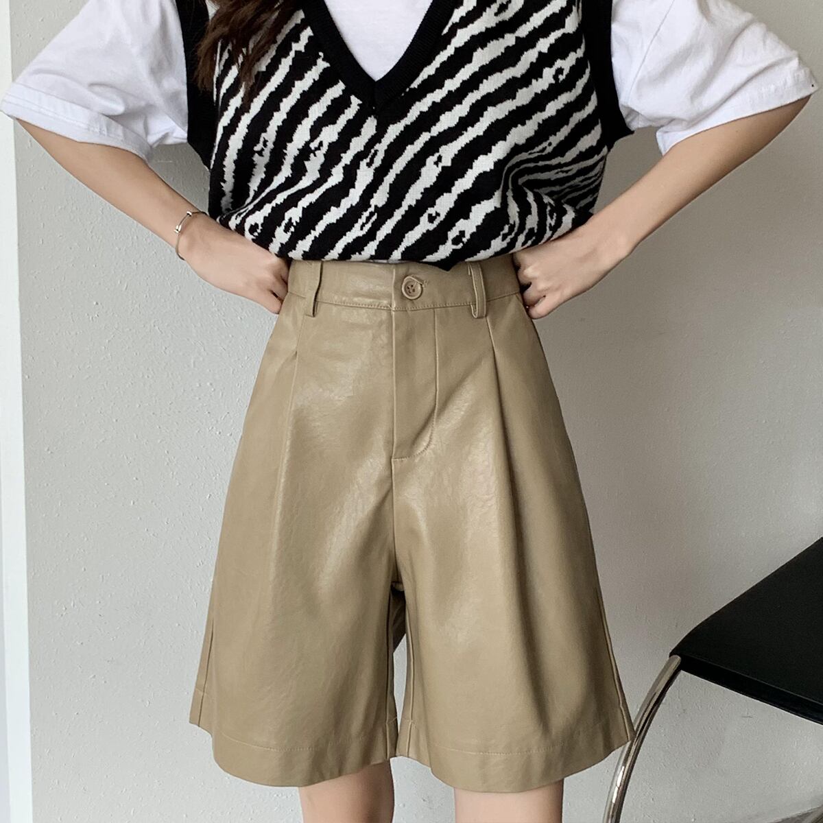 ショーツ オータムカジュアルハイウェストレザーパンツ ルーズ薄手 秋物 ブルマー クレセントシティ79124458797
