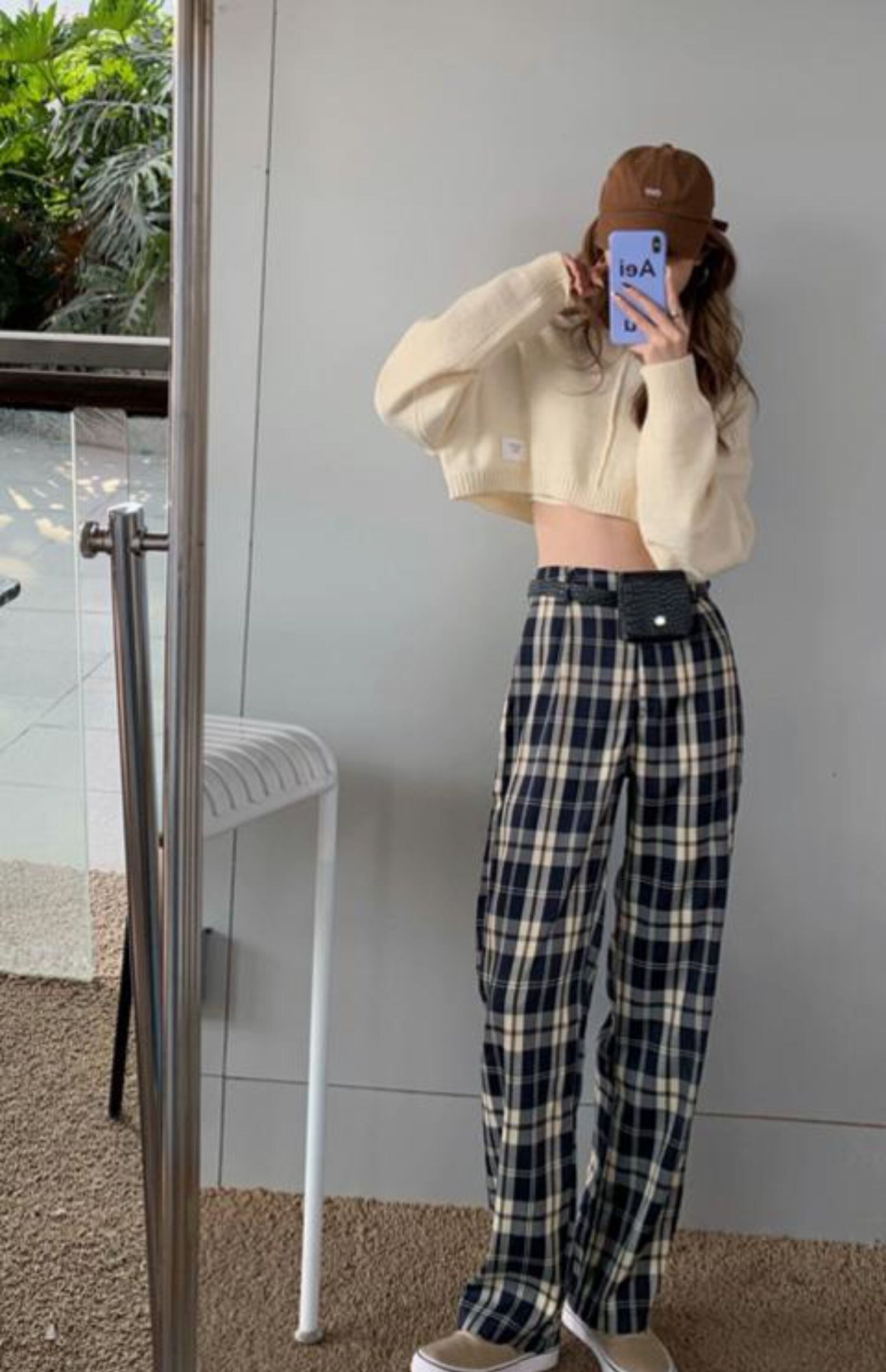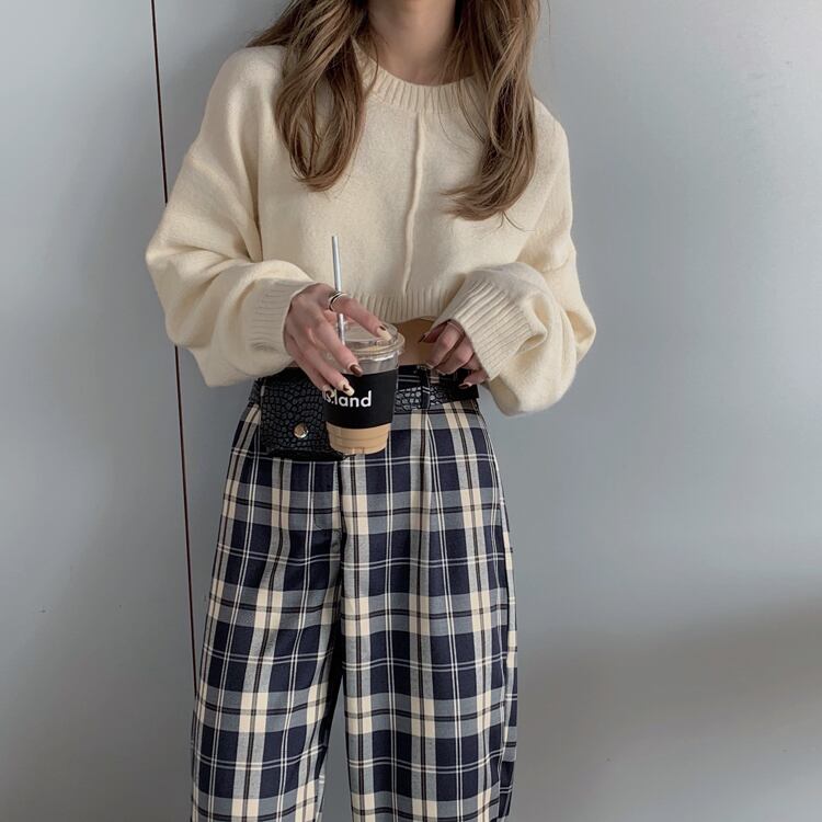 スタンダードカジュアルパンツ オータム薄手ルーズハイウェスト レトロ 秋物 クレセントシティ81381112439