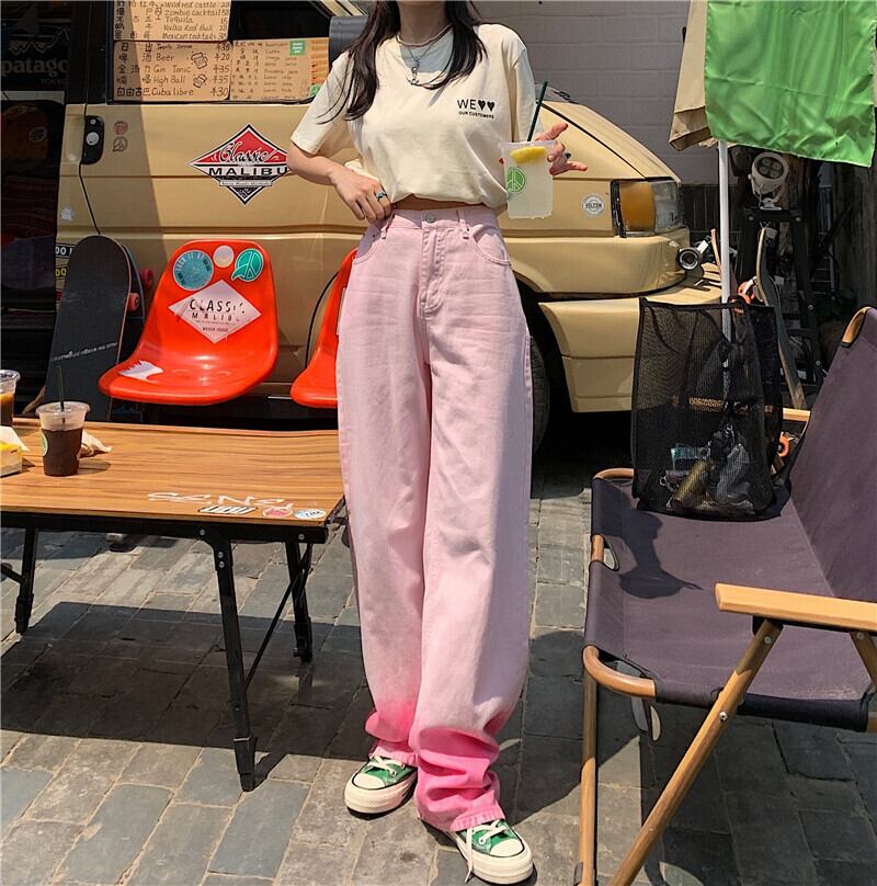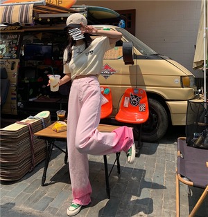 ジーンズ サマールーズパンツ ワイドレッグハイウェストウェスト ピンク 夏物 ワイドパンツ クレセントシティ32213122440