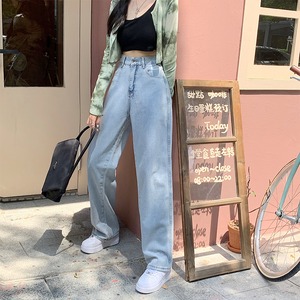 ジーンズ サマースリムルーズハイウェストウェストワイドレッグパンツ レッド 夏物 ワイドパンツ クレセントシティ45378952358