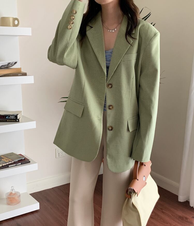 スタンダード格子柄ジャケット オータムカジュアルルーズ レトロ ストリート 秋物 クレセントシティ58646302154