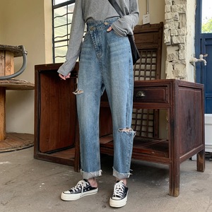 ジーンズ サマーハイウェストパンツ ルーズクロップド レトロ 夏物 クレセントシティ99463529518