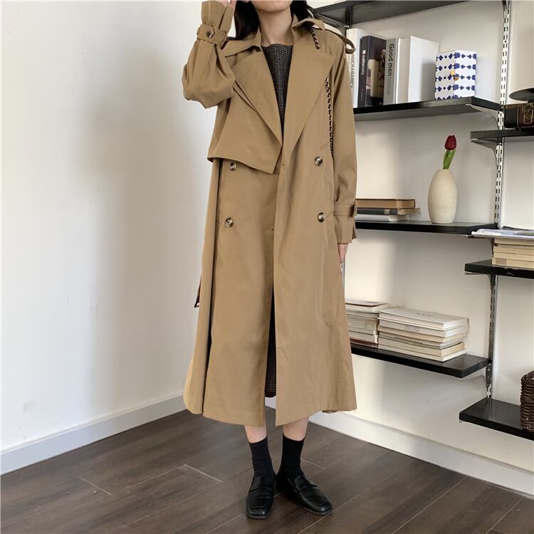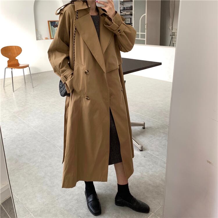 ルーズレディースオータムダブルブレストロングジャケット 秋物 クレセントシティ43472121073