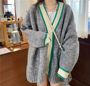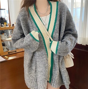 スタンダードルーズVネックニットセーター ジャケット レディースオータムウィンターカーディガン ロング レトロ 秋物 冬物 クレセントシティ69417751065