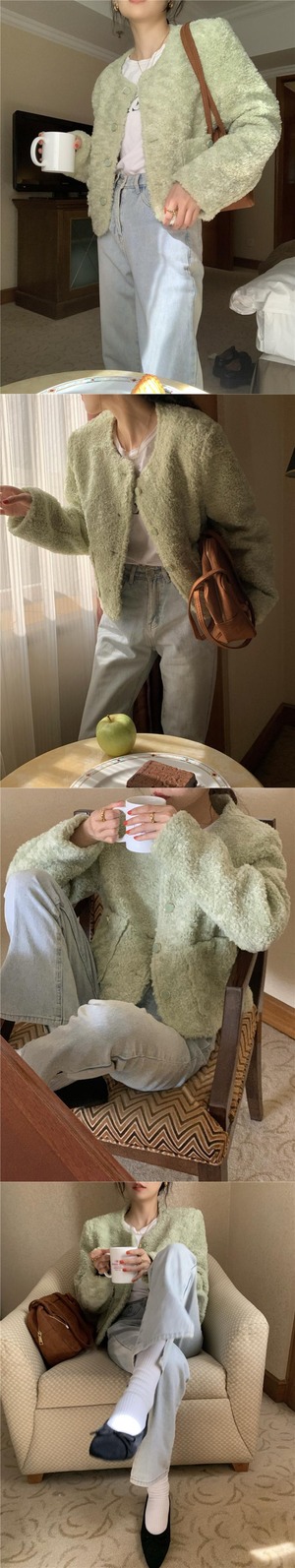 グリーンショートジャケット レディースルーズトップス ストリート オータム 秋物 ウィンター 冬物 クレセントシティ8304959737